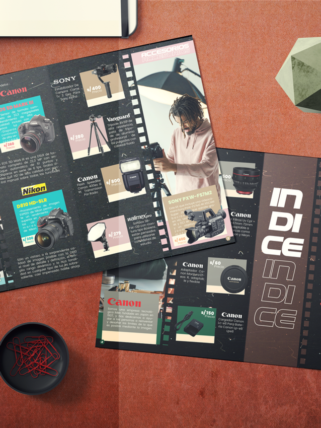 Catálogo - Equipos fotográficos y accesorios de marcas como Sony, Cannon y Nikon